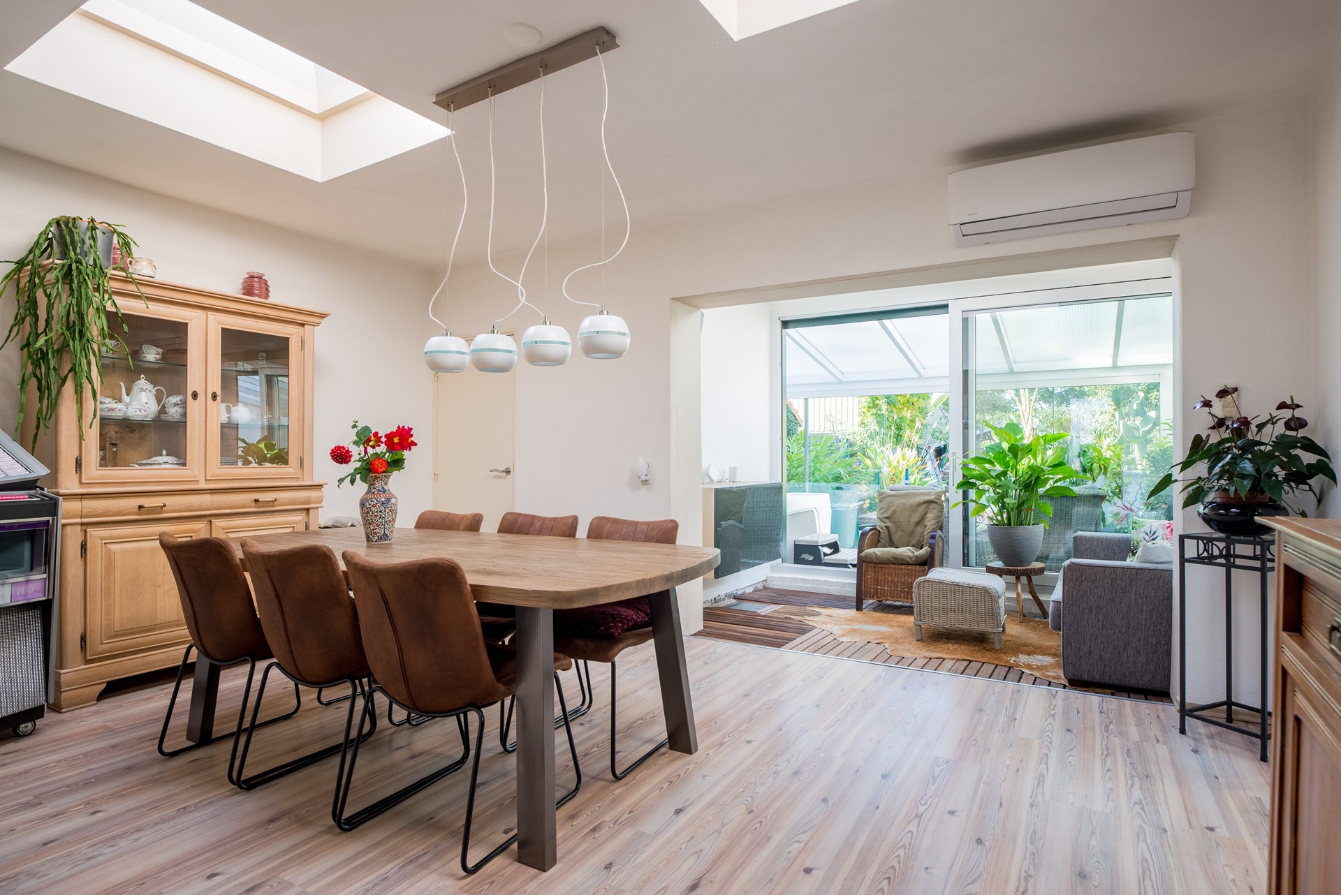 Dankzij de vele ramen, lichtkoepels en serre is het een heerlijk lichte woning met een prettige verbinding tussen binnen en buiten. Bovendien is de woning volledig voorbereid op de toekomst dankzij diverse verduurzamingsmaatregelen, waaronder 15 zonnepanelen, een warmtepompboiler, airco's om te verwarmen en te koelen. Dit alles resulteert dat de woning een energielabel A heeft!